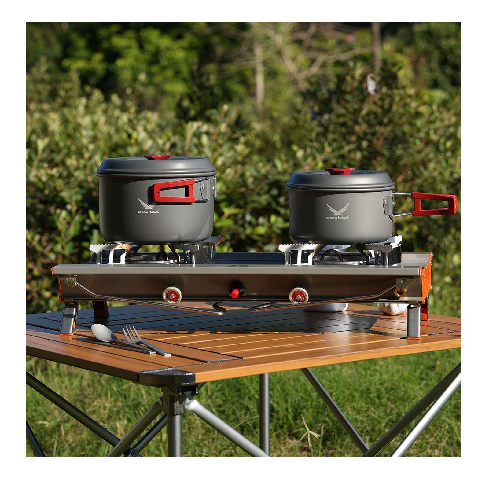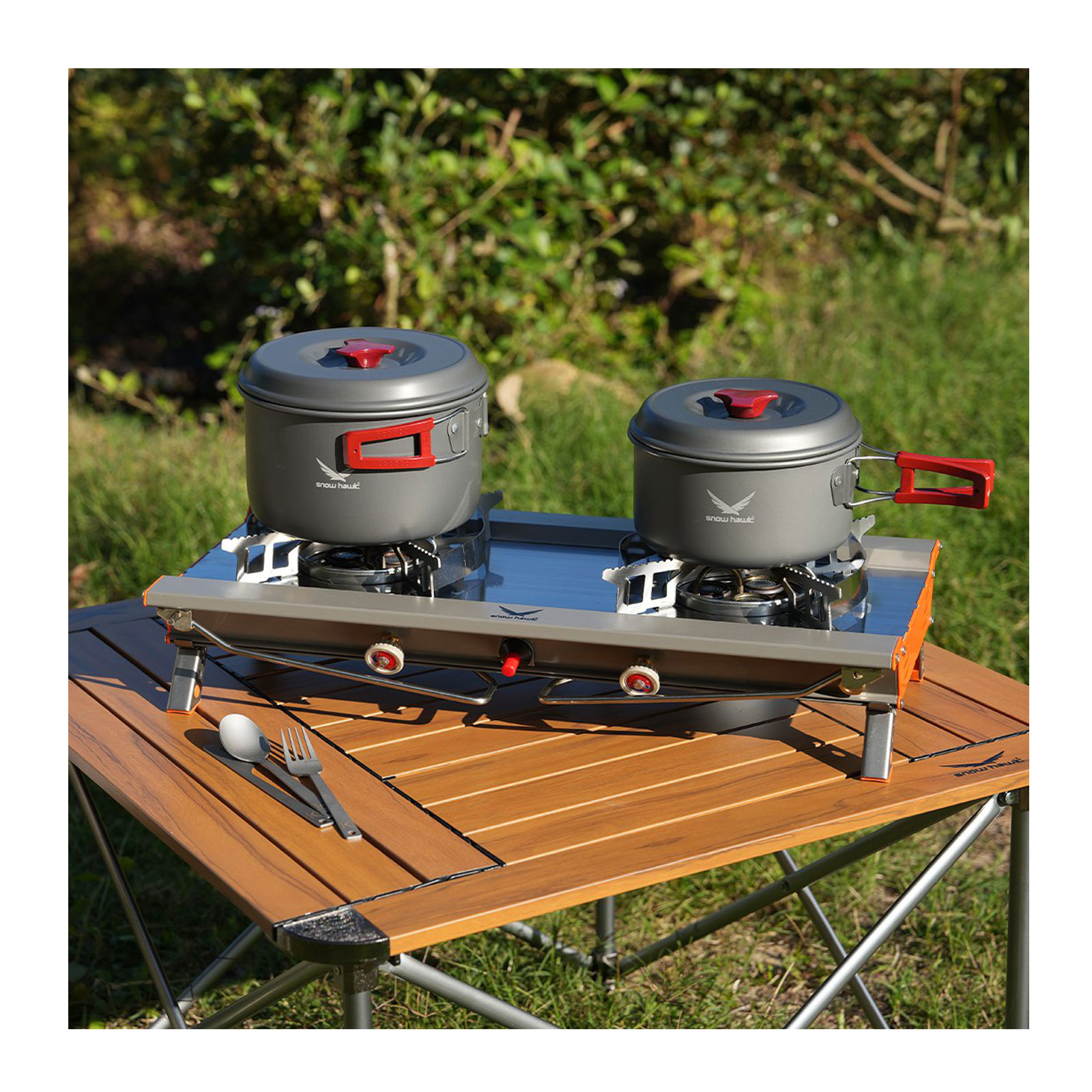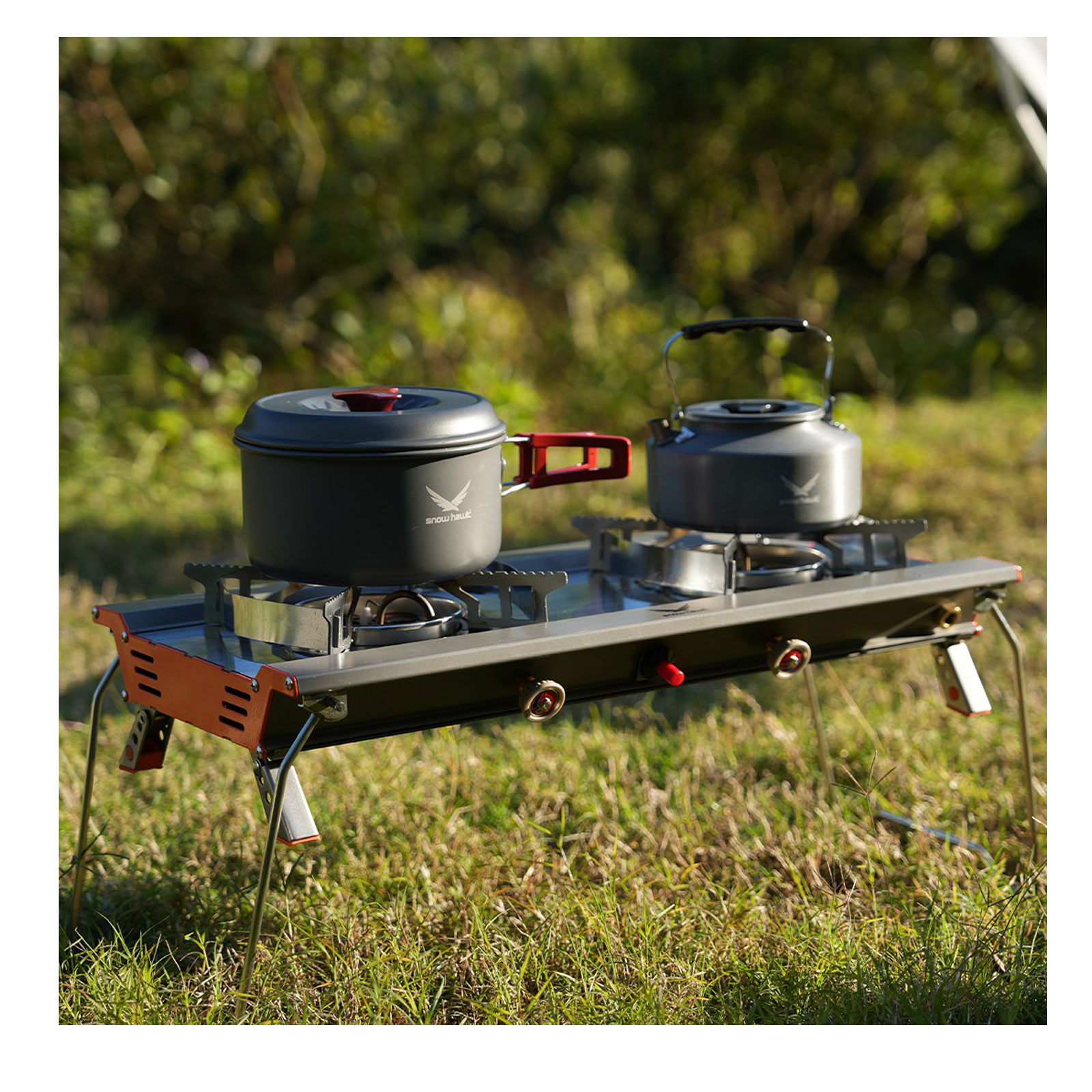 یکی دیگر از نقاط قوت اجاق دو شعله کمپینگ اسنوهاک، سیستم اشتعال با فندک داخلی است که روشن شدن سریع و آسان را ممکن می سازد. این اجاق با سه نوع مخزن گاز مختلف سازگار بوده و از انعطاف پذیری بالایی برخوردار است. طراحی هوشمندانه براکت های ضد لغزش در شعلهها نیز امنیت بیشتری فراهم می کند و از سر خوردن ظرفها جلوگیری میکند.