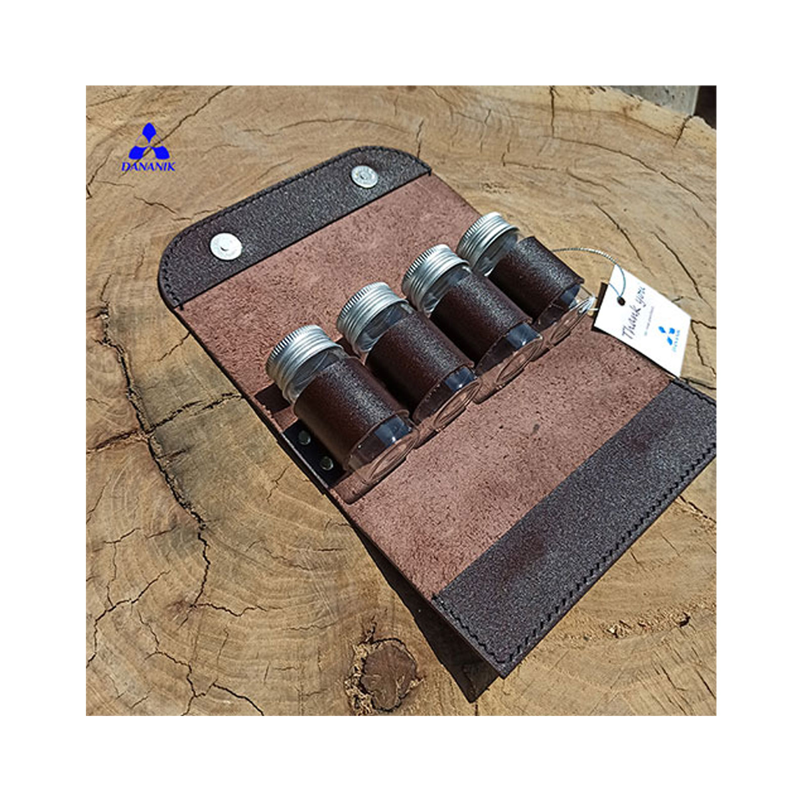 در حین سفر و طبیعتگردی وجود ادویه‌ها برای افزایش طعم لذیذ خوراک و خوردنی‌ها ضروری هستند. جا ادویه دانانیک با وزن و حجم کم داخل کوله و خودرو قابل حمل است که تا هنگام آشپزی در فضای بیرون از خانه، لذت خوراک‌ و خوردنی‌ها را دوچندان کند. جاادویه دانانیک مدل KS4، شامل از 4 عدد بطری شیشه‌ای با درب آلومینیومی، که درون یک کیف چرمی قرار گرفته است. کیف چرمی از جنس چرم طبیعی گاوی با درب آهنربایی (مگنتی) به سهولت باز و بسته شده و در عین حال محافظ بطری‌های شیشه‌ای در هنگام ضربه خواهد بود.