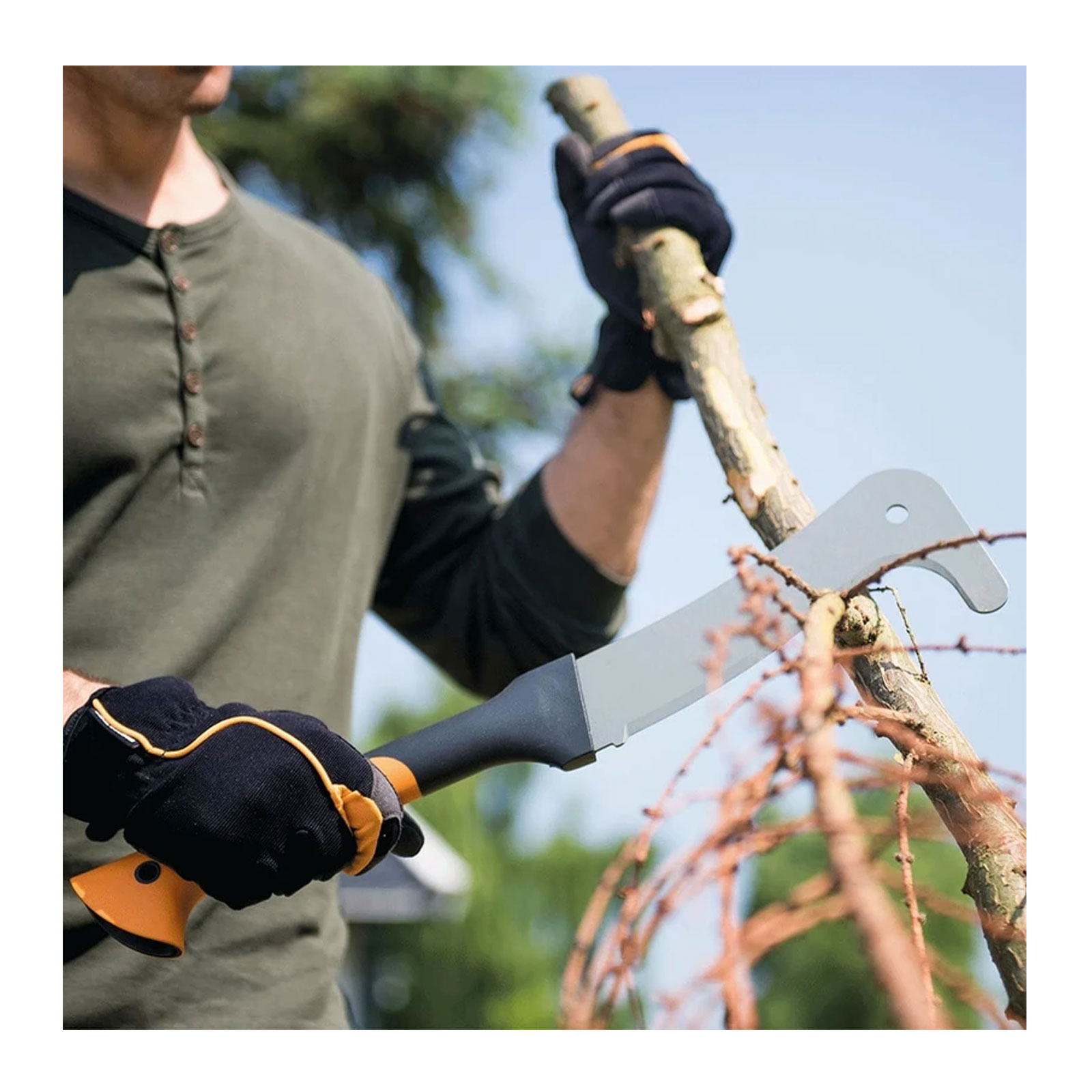انحنایی که در نوک تیغه مشاهده می‌کنید؛ ۹۰ درصد از چوب و خار و خاشاک را از جا خواهد کند. البته این اتفاق، تا حد زیادی مدیون تیغه بسیار تیز داس می‌باشد. ضخامت تیغه ۳ میلی‌متر است. دسته داس فیسکارس با حالت فنری که در هنگام فرود آن را حس خواهید کرد؛ حداکثر پتانسیل را به جسم وارد می‌کند. سوراخی که در انتهای دسته تعبیه شده است؛ برای عبور بند کاربرد دارد.