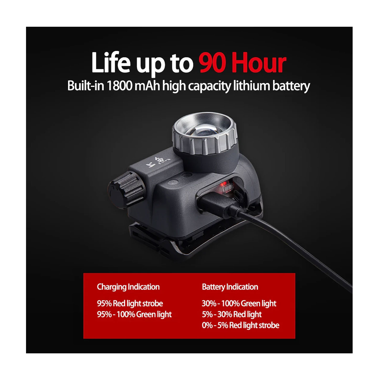 – دارای حسگر حرکتی، روشن و خاموش کردن آسان از فاصله ۷ تا ۱۵ سانتی‌متری از چراغ پیشانی